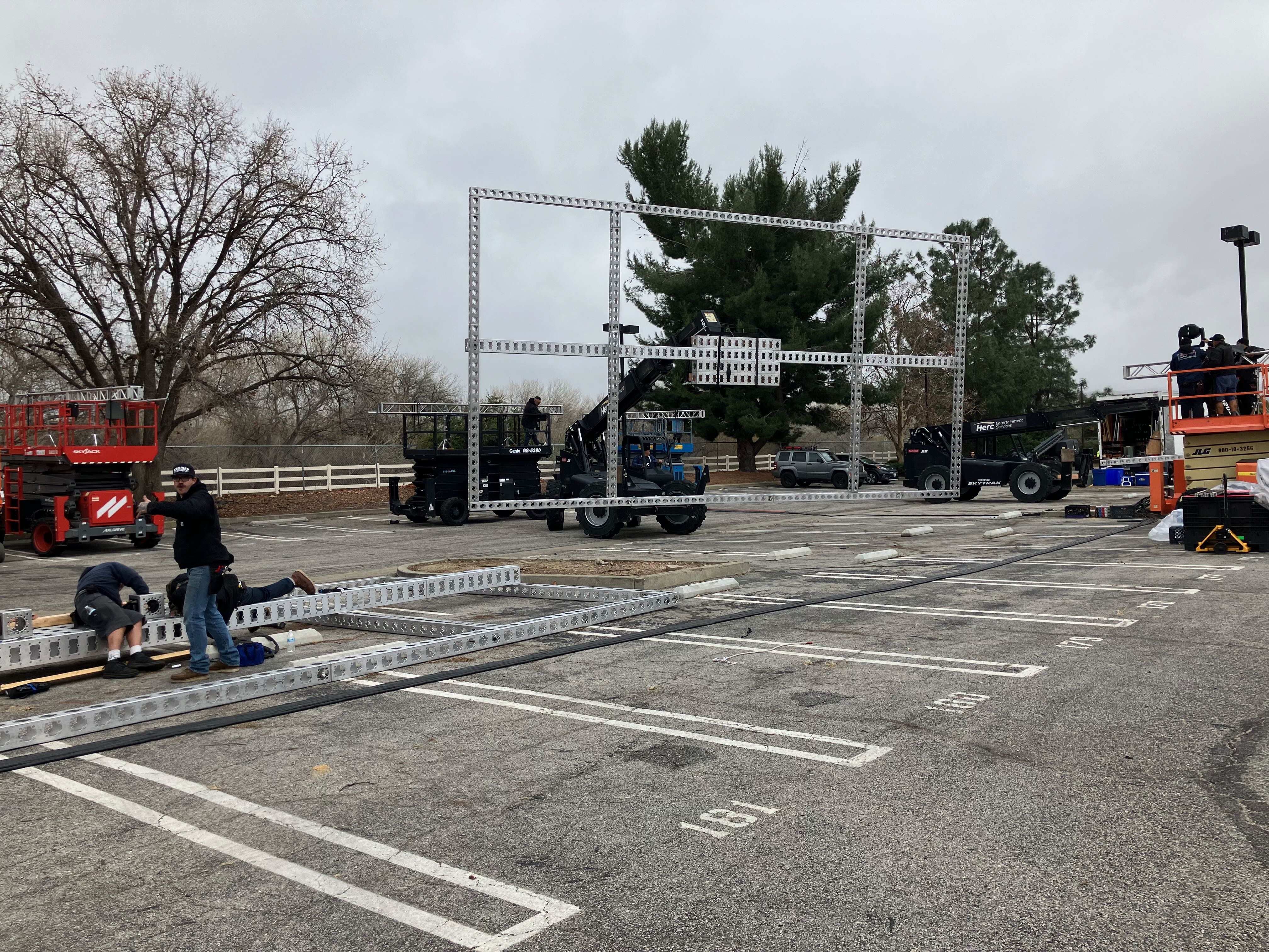 Each frame uses 9″ truss at the telehandler carriage for strength and stability, while the outer structure and vertical ribs are built with Mx|66| for reduced weight and flexible rigging. VFX Frames mount via 9" Modulus-X blocks and Division’s KingPin Adaptor ModParts, locking safely into the carriage.