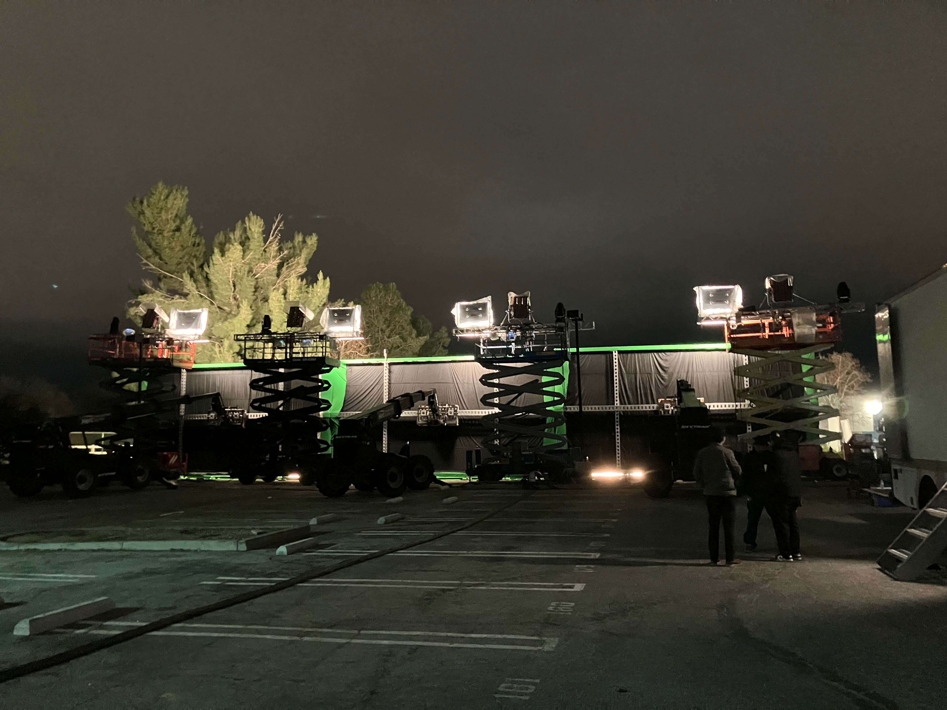 Division VFX Frames are vertically-mounted modular frames built for telehandler use in blue screen, green screen, and negative fill applications. Designed to mount directly to a telehandler carriage with forks removed, these frames offer a stable, mobile surface for large-scale VFX rags on stage or location.