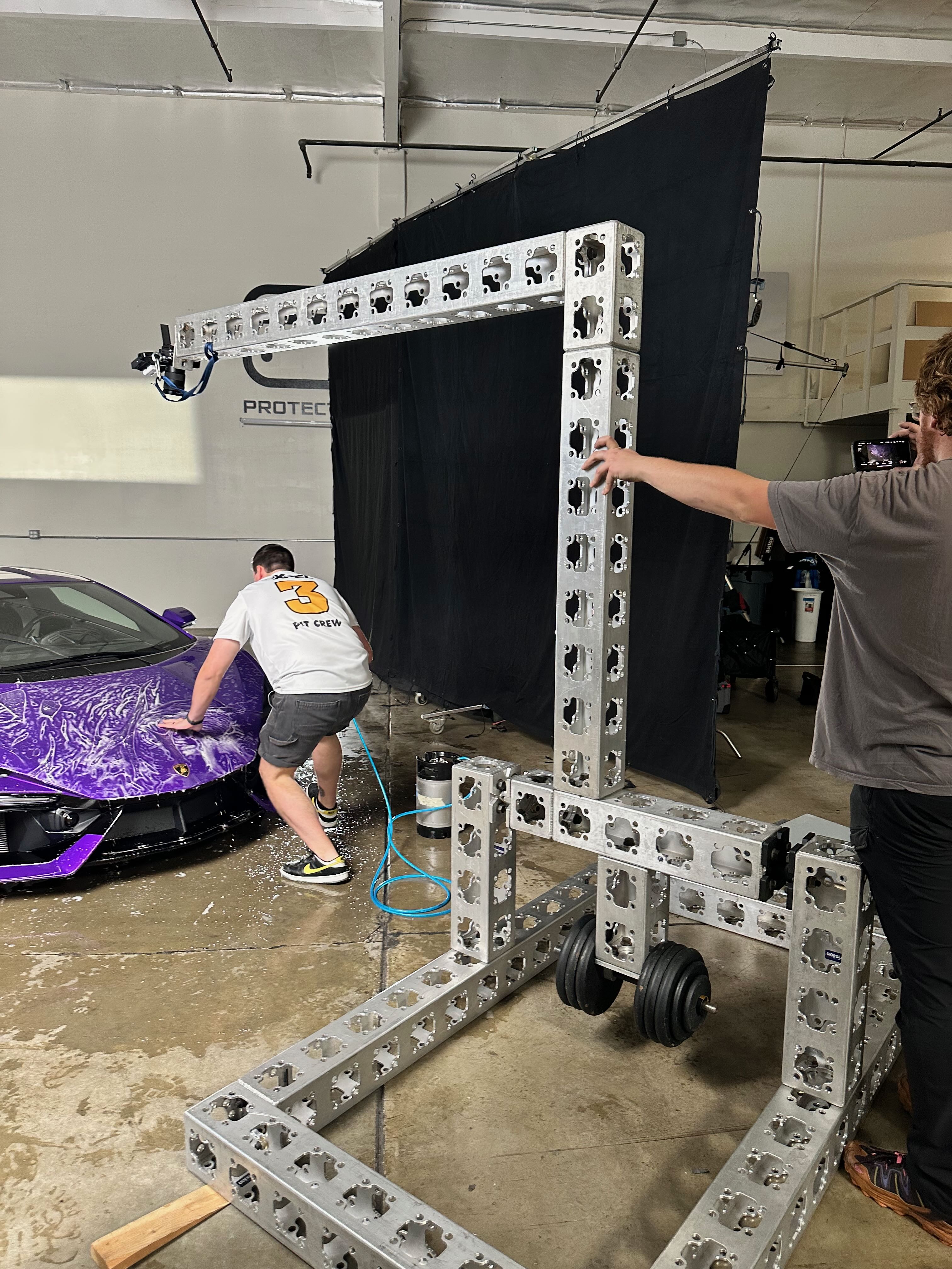 Rainbow Rigs are modular camera systems built from Modulus-X truss and Division ModParts. Each rig enables arcing camera movement while keeping a consistent distance to subject — ideal for satellite camera movement and dynamic product coverage.